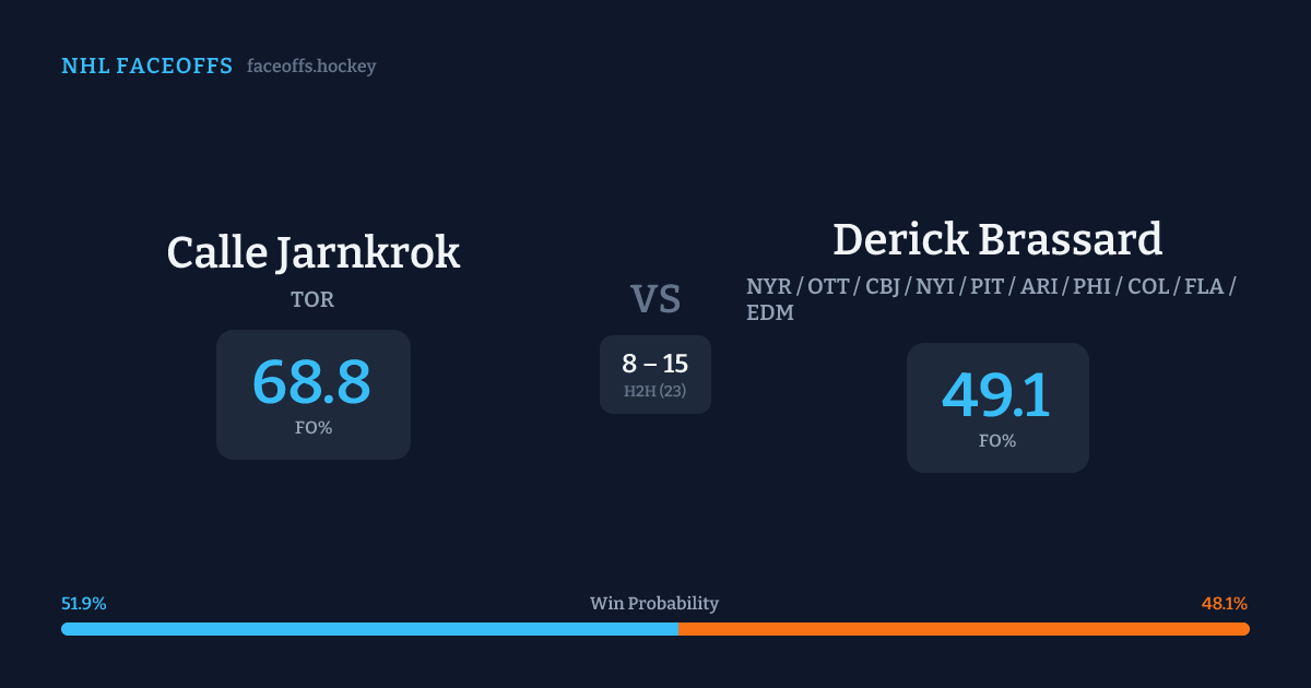 Calle Jarnkrok vs Derick Brassard — Faceoff Head-to-Head