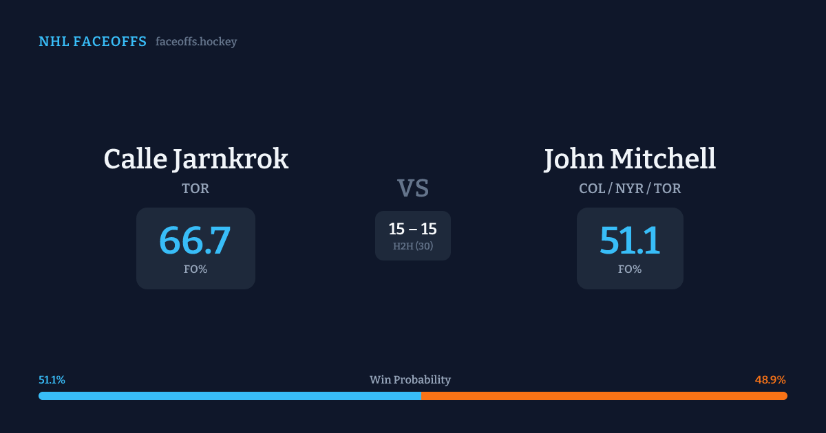Calle Jarnkrok vs John Mitchell — Faceoff Head-to-Head