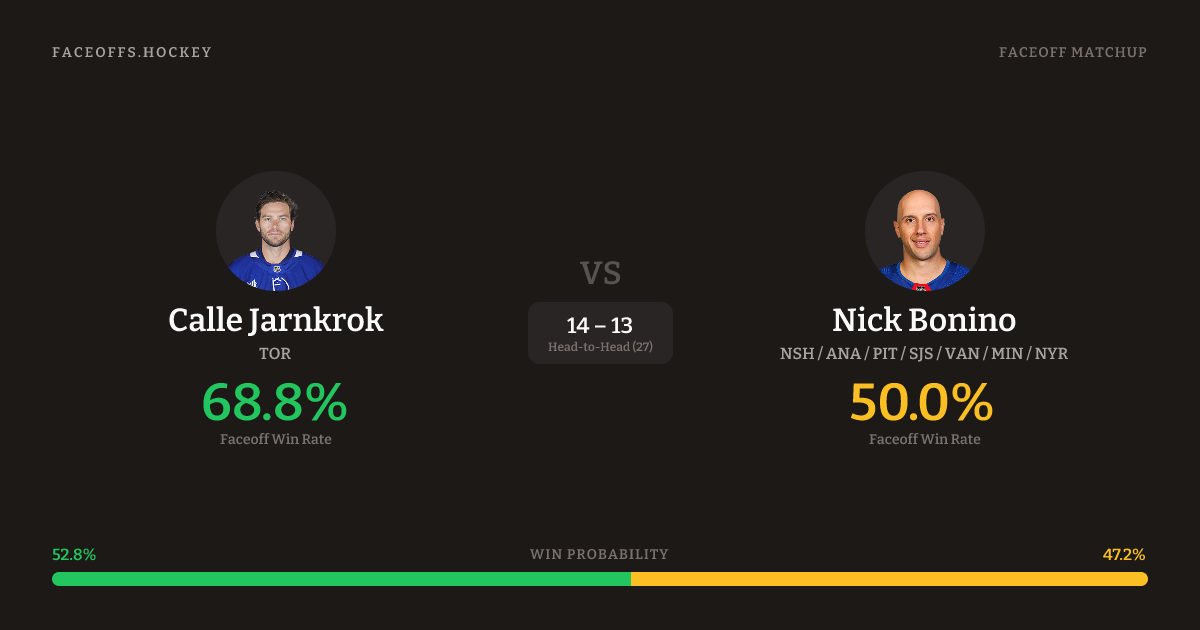 Calle Jarnkrok vs Nick Bonino — Faceoff Head-to-Head