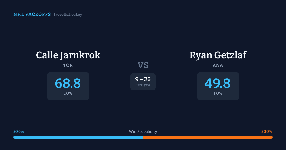 Calle Jarnkrok vs Ryan Getzlaf — Faceoff Head-to-Head