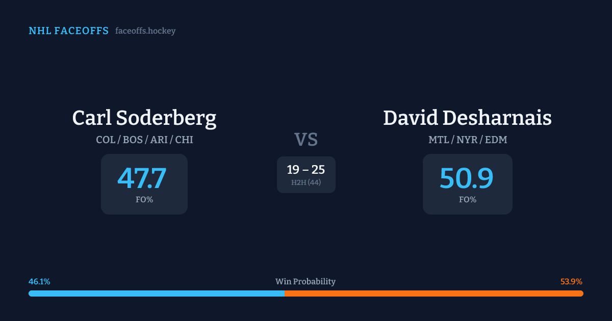 Carl Soderberg vs David Desharnais — Faceoff Head-to-Head