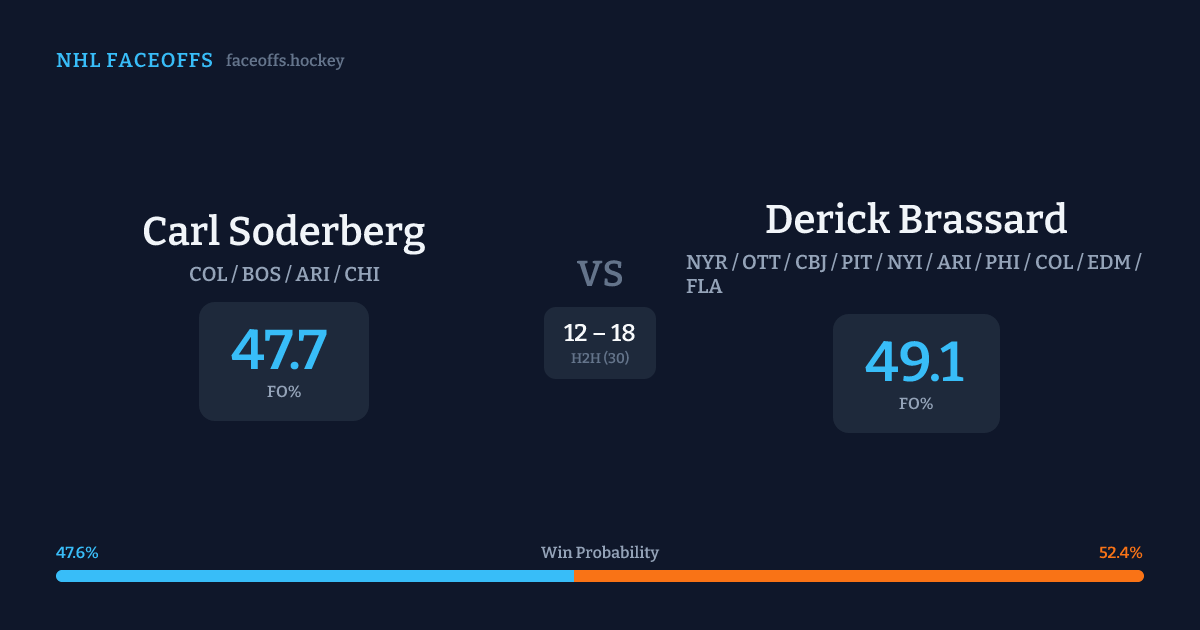 Carl Soderberg vs Derick Brassard — Faceoff Head-to-Head
