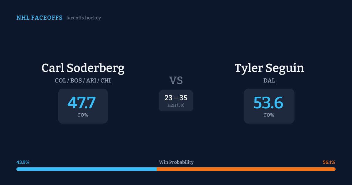 Carl Soderberg vs Tyler Seguin — Faceoff Head-to-Head