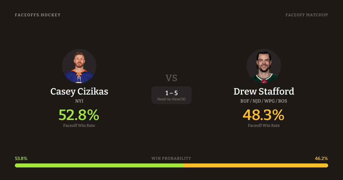 Casey Cizikas vs Drew Stafford — Faceoff Head-to-Head