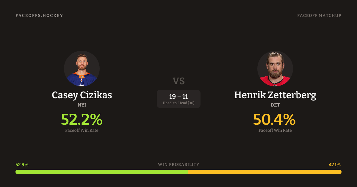 Casey Cizikas vs Henrik Zetterberg — Faceoff Head-to-Head