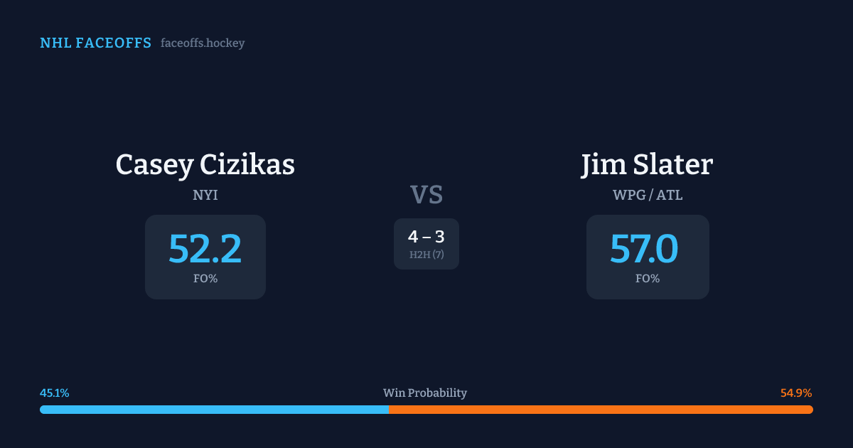Casey Cizikas vs Jim Slater — Faceoff Head-to-Head