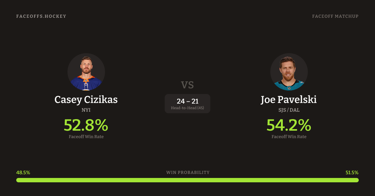 Casey Cizikas vs Joe Pavelski — Faceoff Head-to-Head