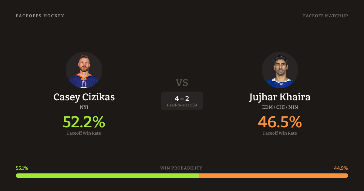Casey Cizikas vs Jujhar Khaira — Faceoff Head-to-Head