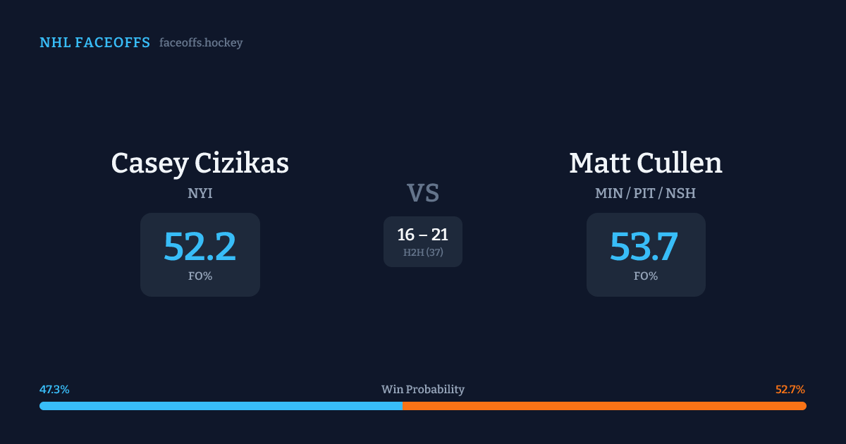 Casey Cizikas vs Matt Cullen — Faceoff Head-to-Head