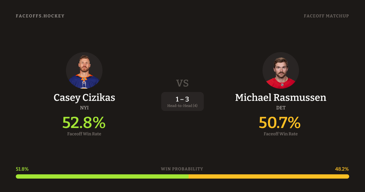 Casey Cizikas vs Michael Rasmussen — Faceoff Head-to-Head