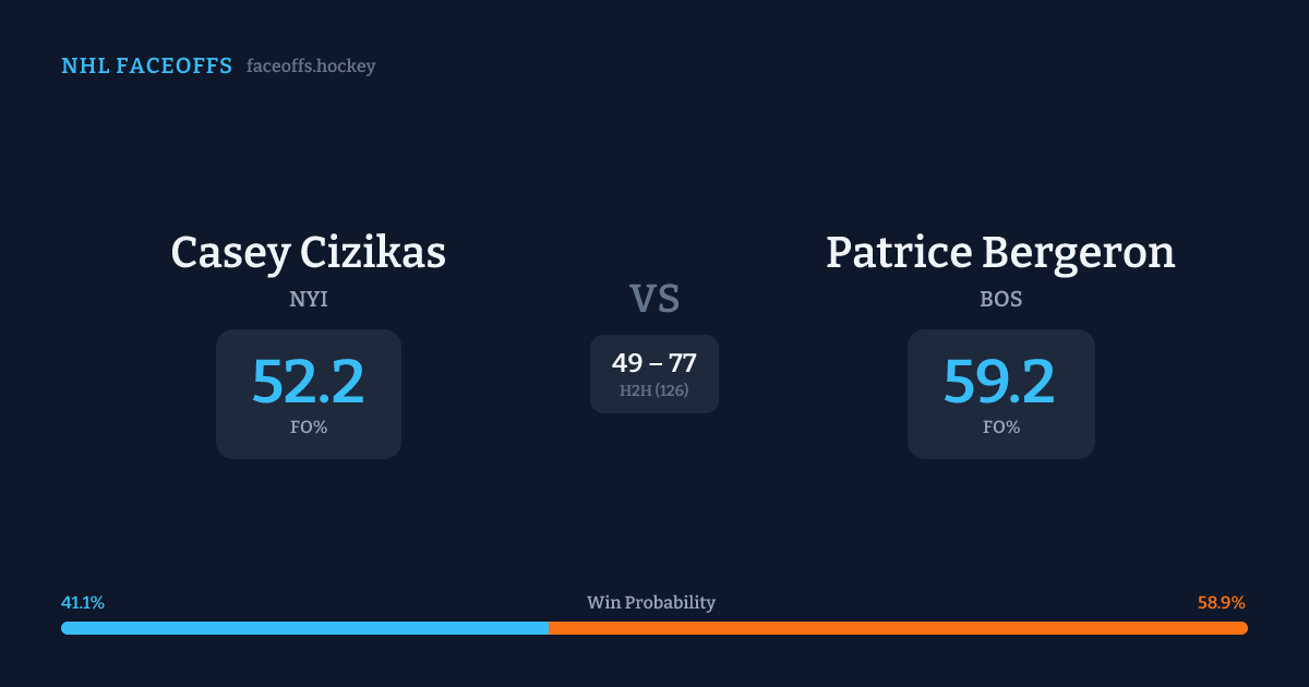 Casey Cizikas vs Patrice Bergeron — Faceoff Head-to-Head