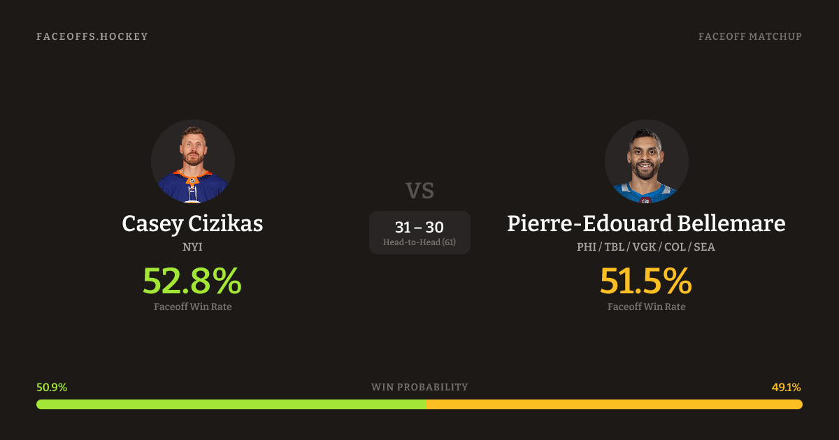 Casey Cizikas vs Pierre-Edouard Bellemare — Faceoff Head-to-Head