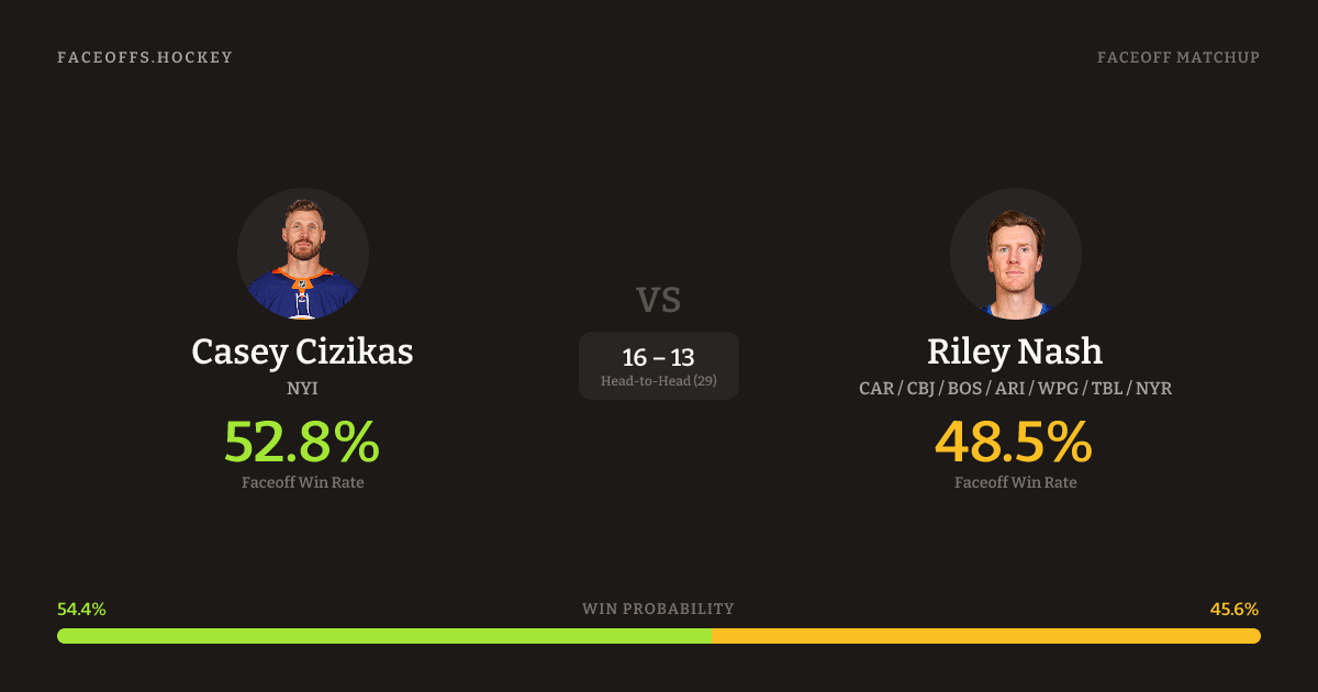 Casey Cizikas vs Riley Nash — Faceoff Head-to-Head