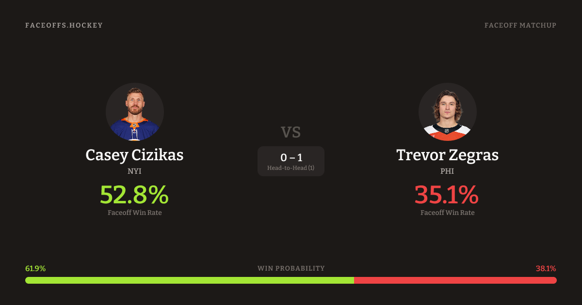 Casey Cizikas vs Trevor Zegras — Faceoff Head-to-Head