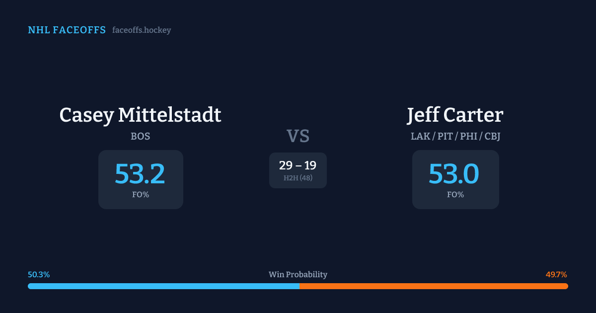 Casey Mittelstadt vs Jeff Carter — Faceoff Head-to-Head