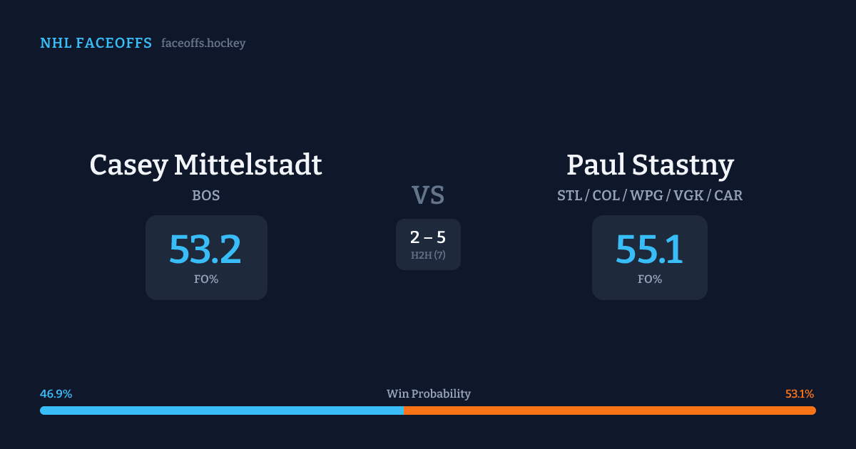 Casey Mittelstadt vs Paul Stastny — Faceoff Head-to-Head