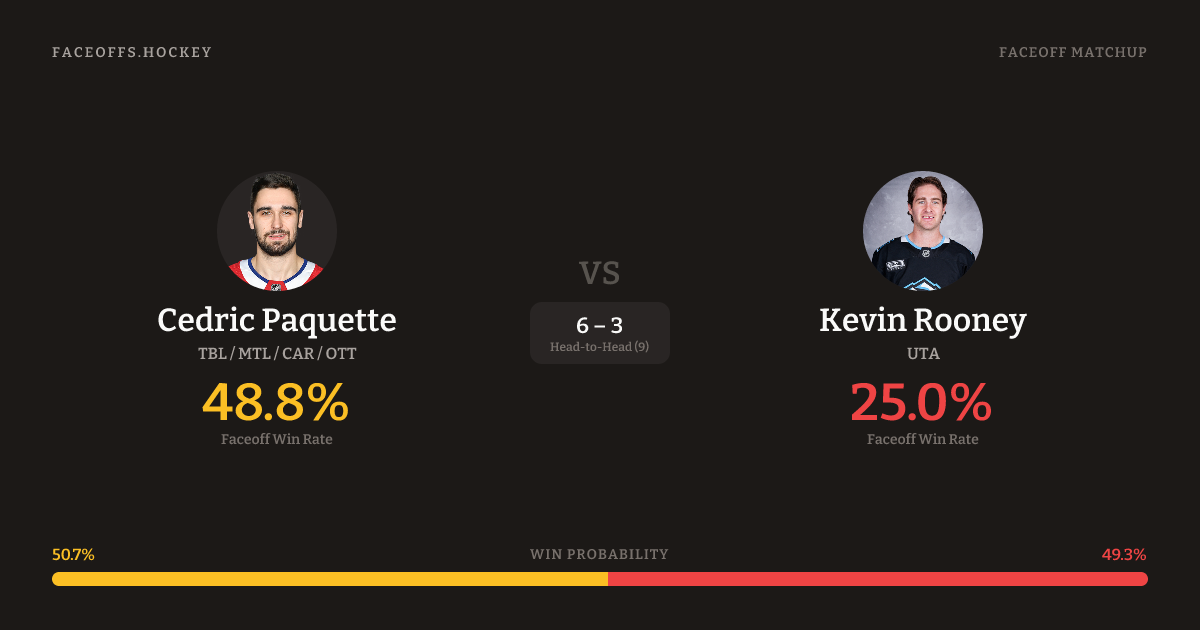 Cedric Paquette vs Kevin Rooney — Faceoff Head-to-Head