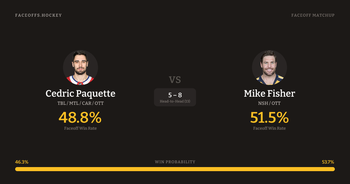 Cedric Paquette vs Mike Fisher — Faceoff Head-to-Head