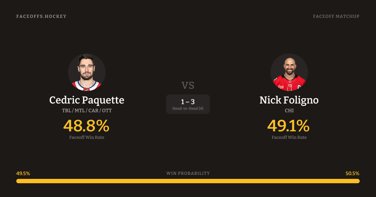Cedric Paquette vs Nick Foligno — Faceoff Head-to-Head