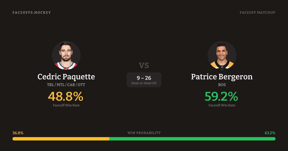 Cedric Paquette vs Patrice Bergeron — Faceoff Head-to-Head