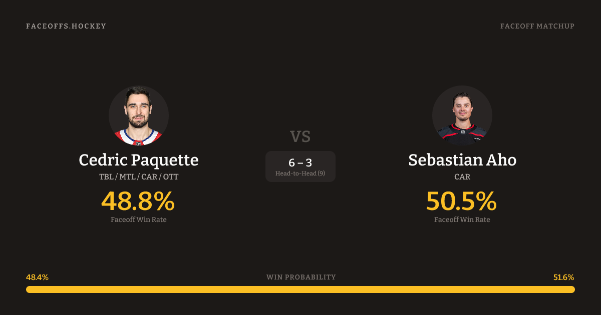 Cedric Paquette vs Sebastian Aho — Faceoff Head-to-Head