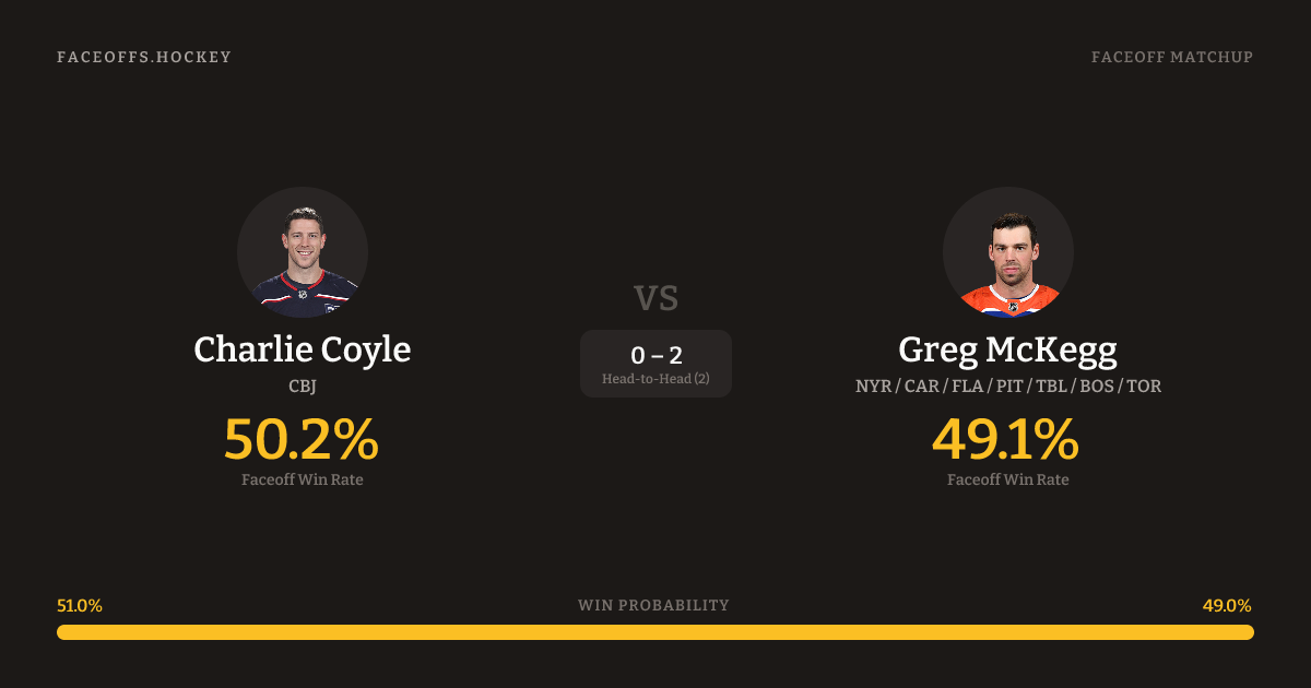 Charlie Coyle vs Greg McKegg — Faceoff Head-to-Head