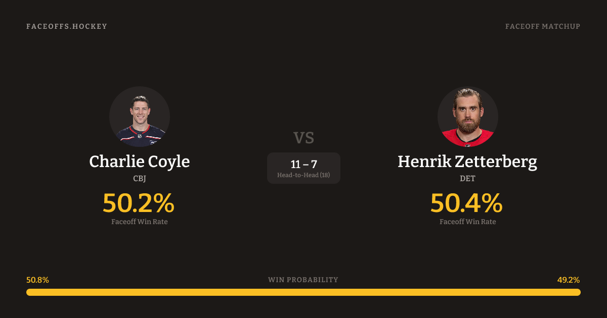 Charlie Coyle vs Henrik Zetterberg — Faceoff Head-to-Head