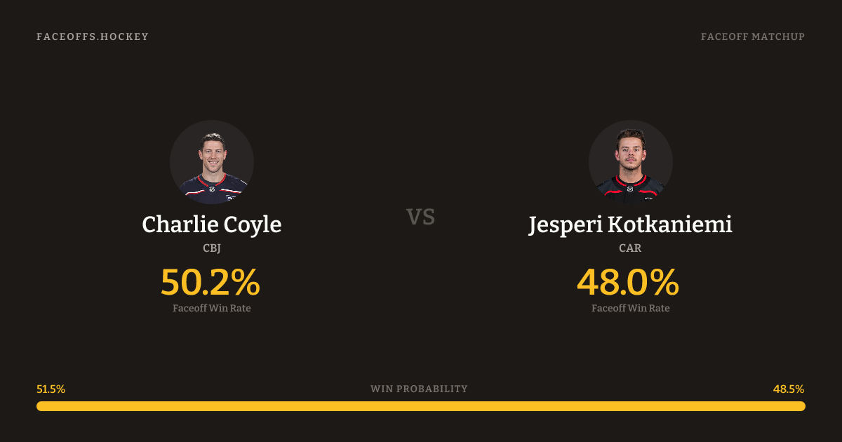 Charlie Coyle vs Jesperi Kotkaniemi — Faceoff Head-to-Head