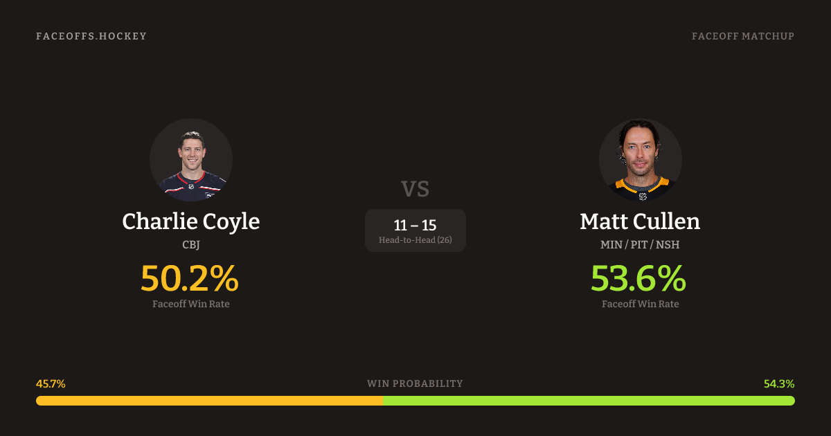 Charlie Coyle vs Matt Cullen — Faceoff Head-to-Head