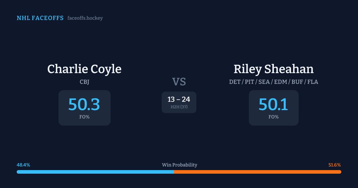 Charlie Coyle vs Riley Sheahan — Faceoff Head-to-Head