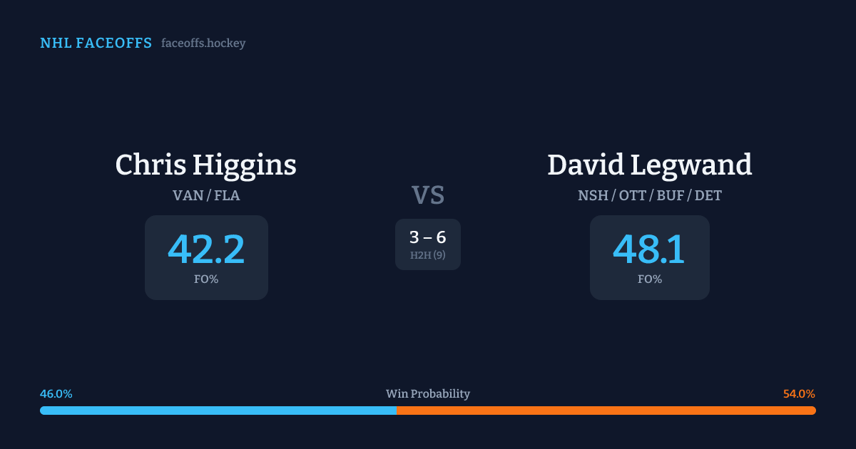 Chris Higgins vs David Legwand — Faceoff Head-to-Head