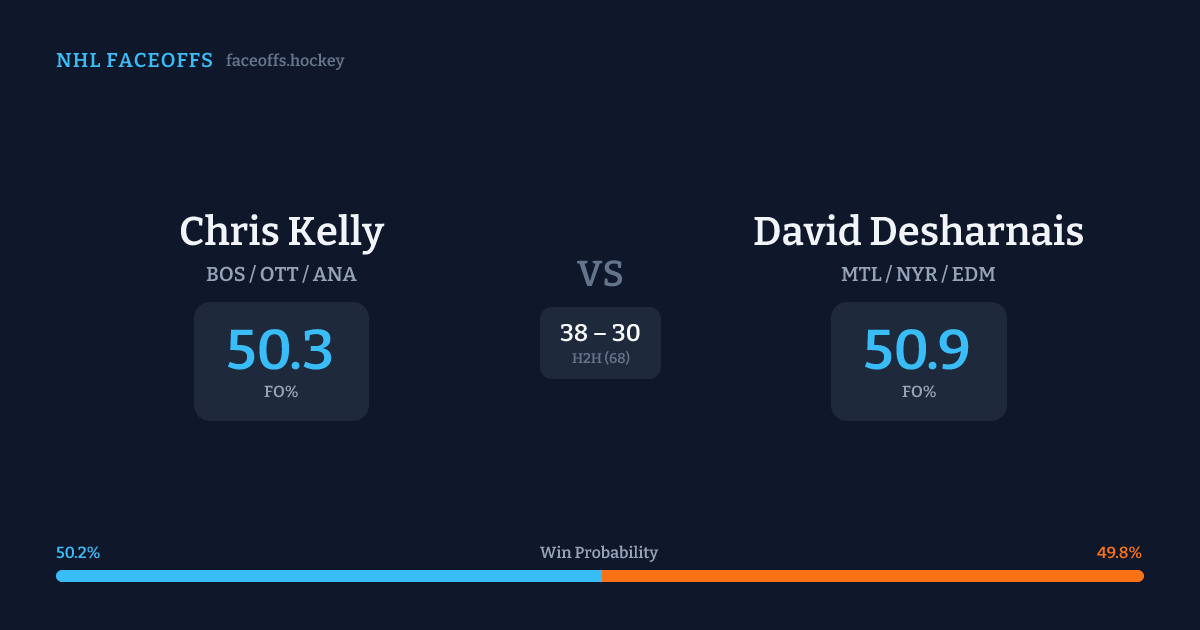 Chris Kelly vs David Desharnais — Faceoff Head-to-Head