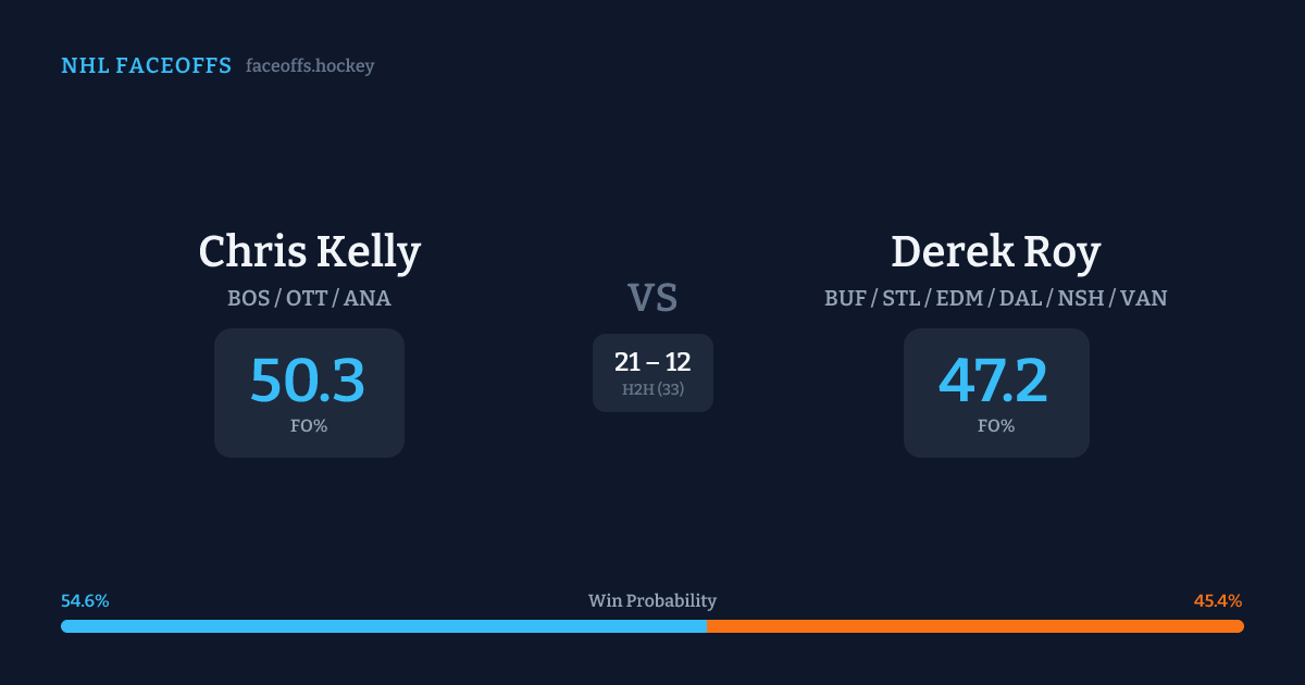 Chris Kelly vs Derek Roy — Faceoff Head-to-Head