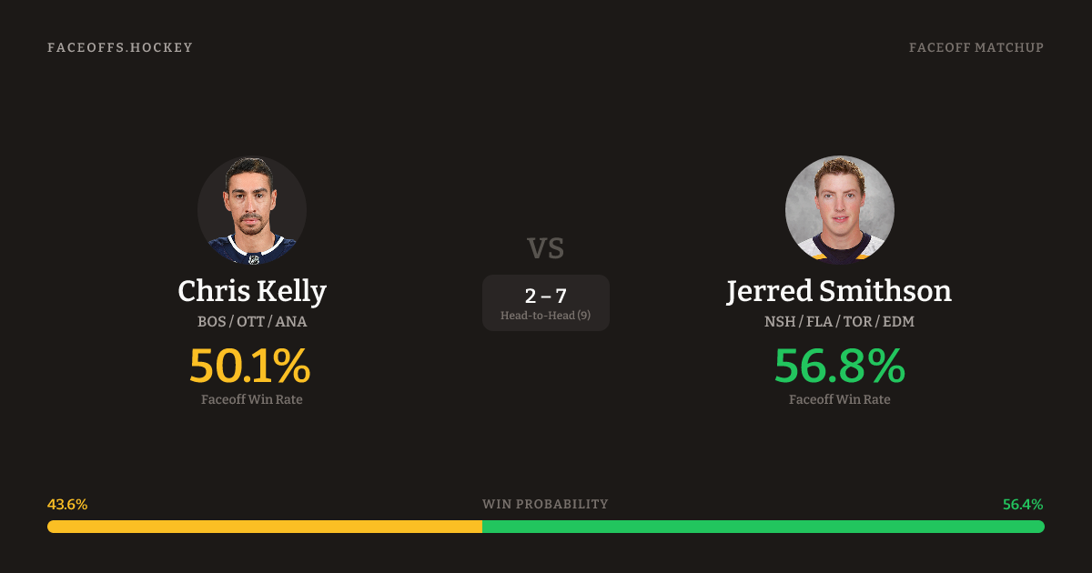 Chris Kelly vs Jerred Smithson — Faceoff Head-to-Head