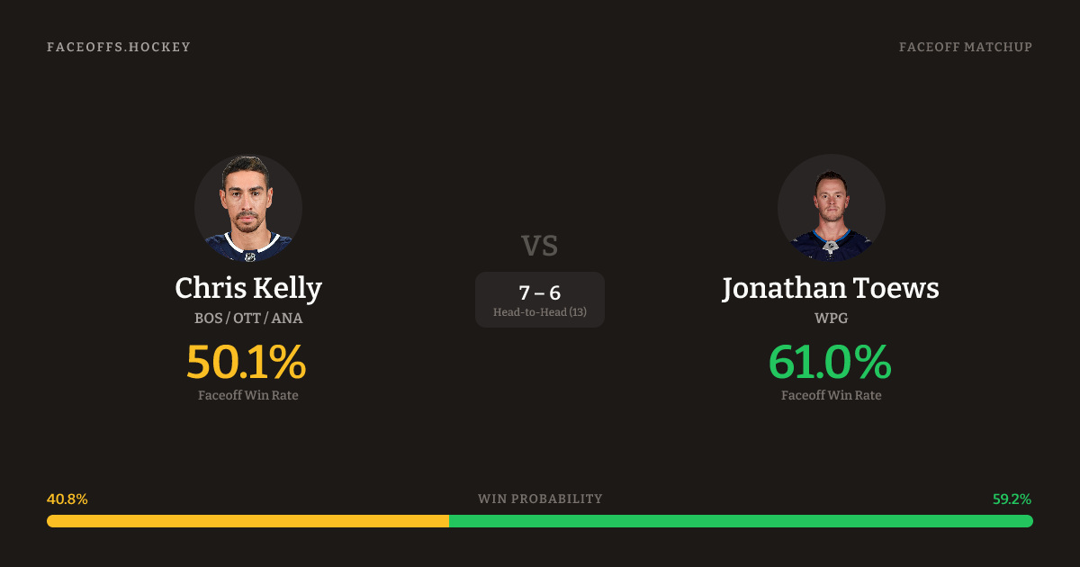 Chris Kelly vs Jonathan Toews — Faceoff Head-to-Head