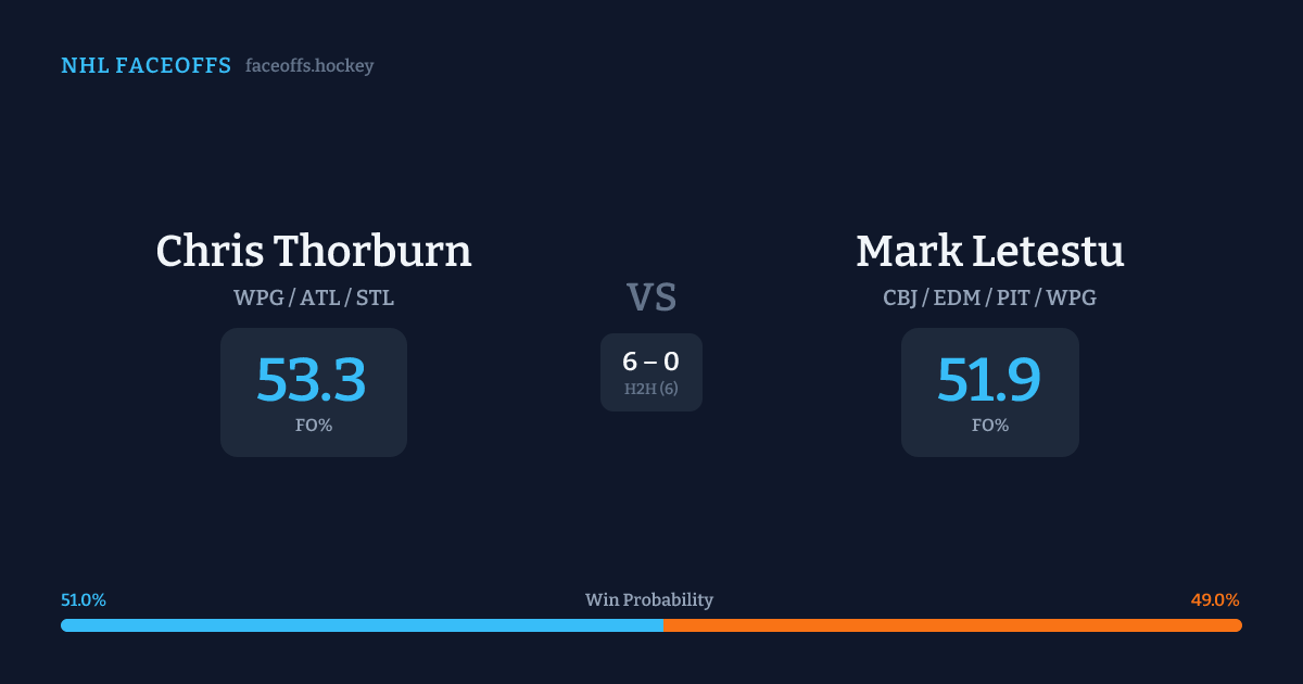 Chris Thorburn vs Mark Letestu — Faceoff Head-to-Head