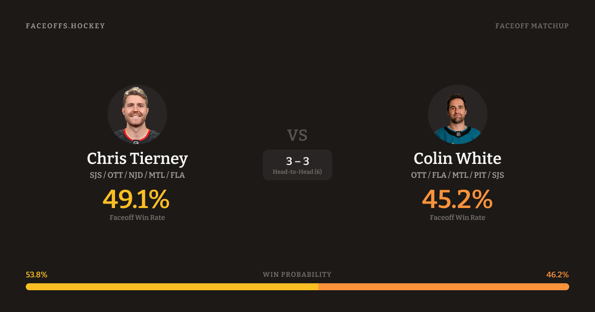 Chris Tierney vs Colin White — Faceoff Head-to-Head
