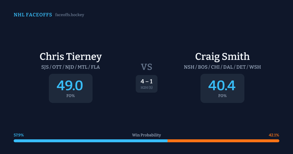 Chris Tierney vs Craig Smith — Faceoff Head-to-Head