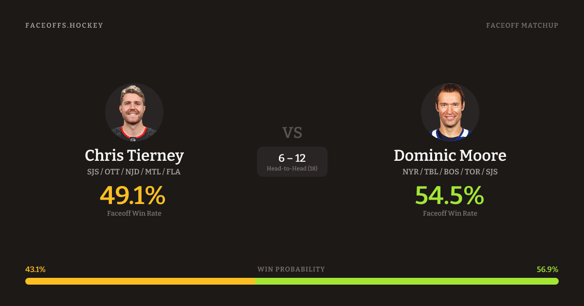 Chris Tierney vs Dominic Moore — Faceoff Head-to-Head