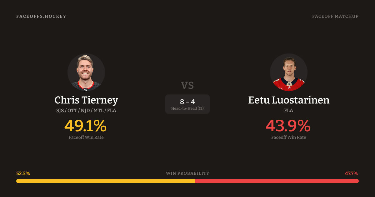 Chris Tierney vs Eetu Luostarinen — Faceoff Head-to-Head