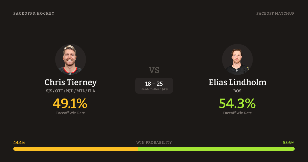 Chris Tierney vs Elias Lindholm — Faceoff Head-to-Head