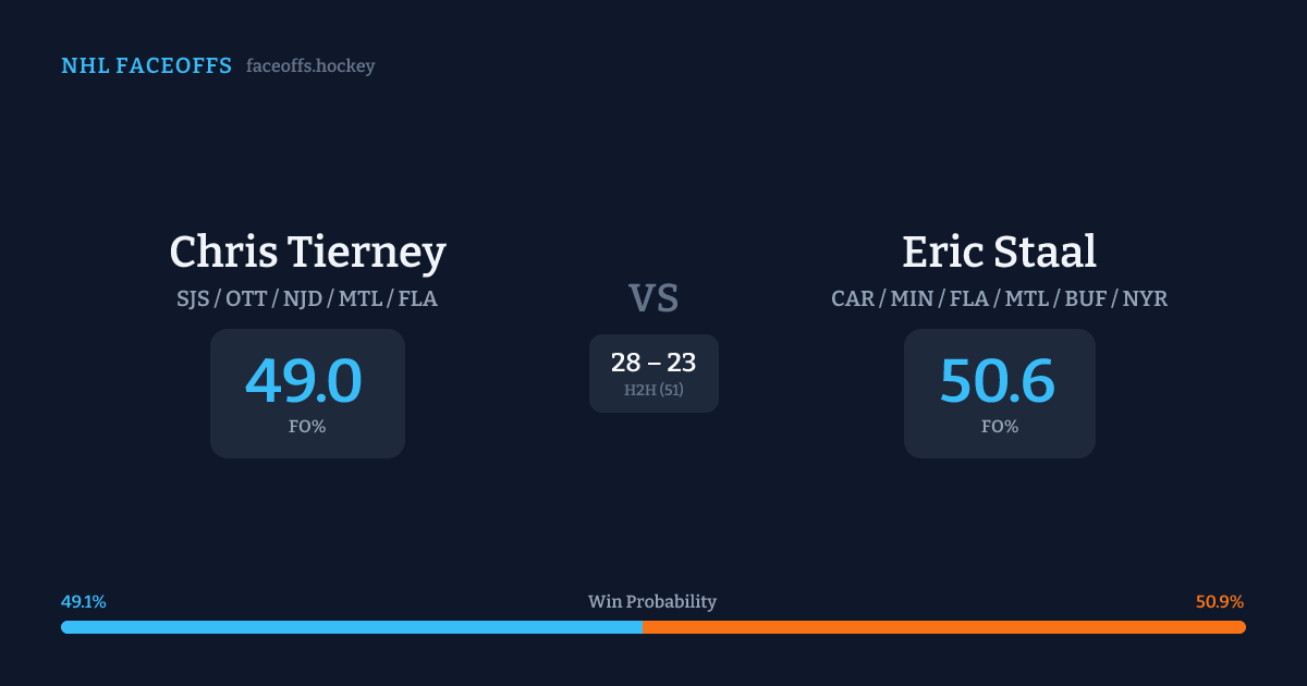 Chris Tierney vs Eric Staal — Faceoff Head-to-Head