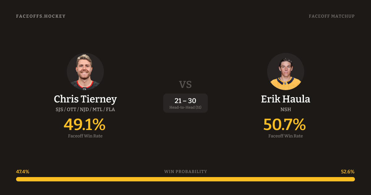 Chris Tierney vs Erik Haula — Faceoff Head-to-Head