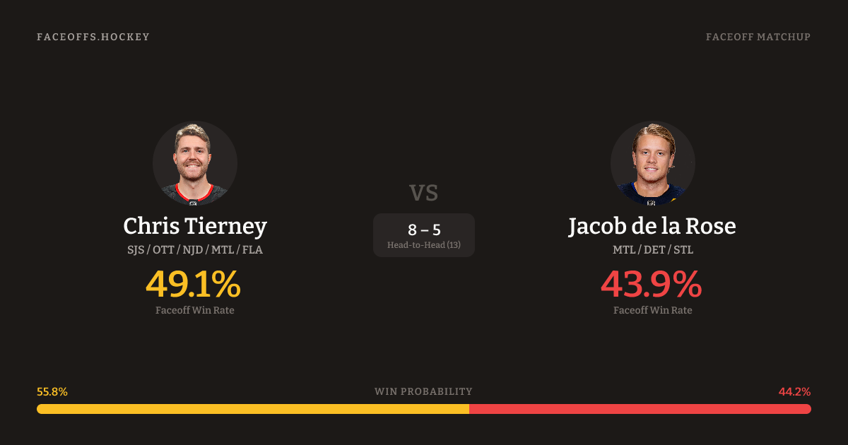 Chris Tierney vs Jacob de la Rose — Faceoff Head-to-Head