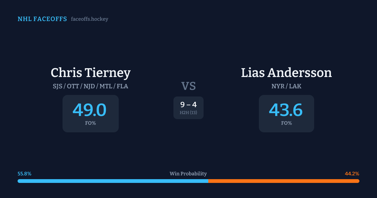 Chris Tierney vs Lias Andersson — Faceoff Head-to-Head