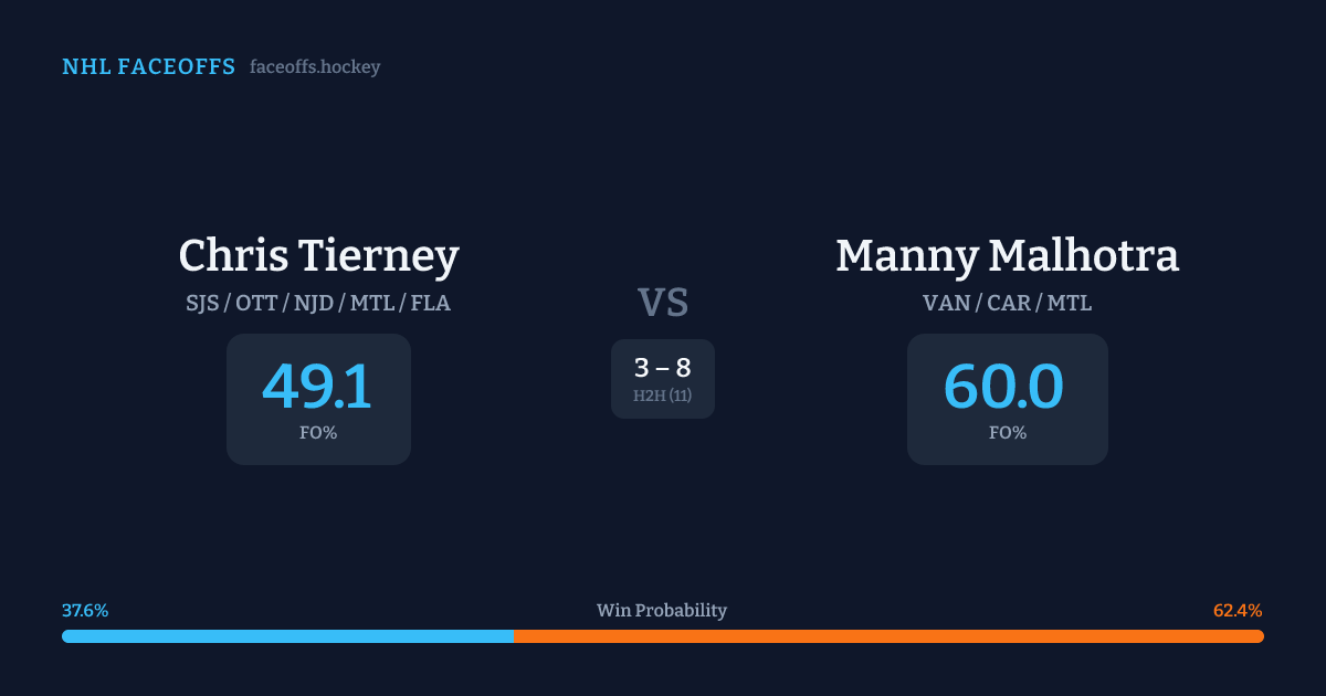Chris Tierney vs Manny Malhotra — Faceoff Head-to-Head