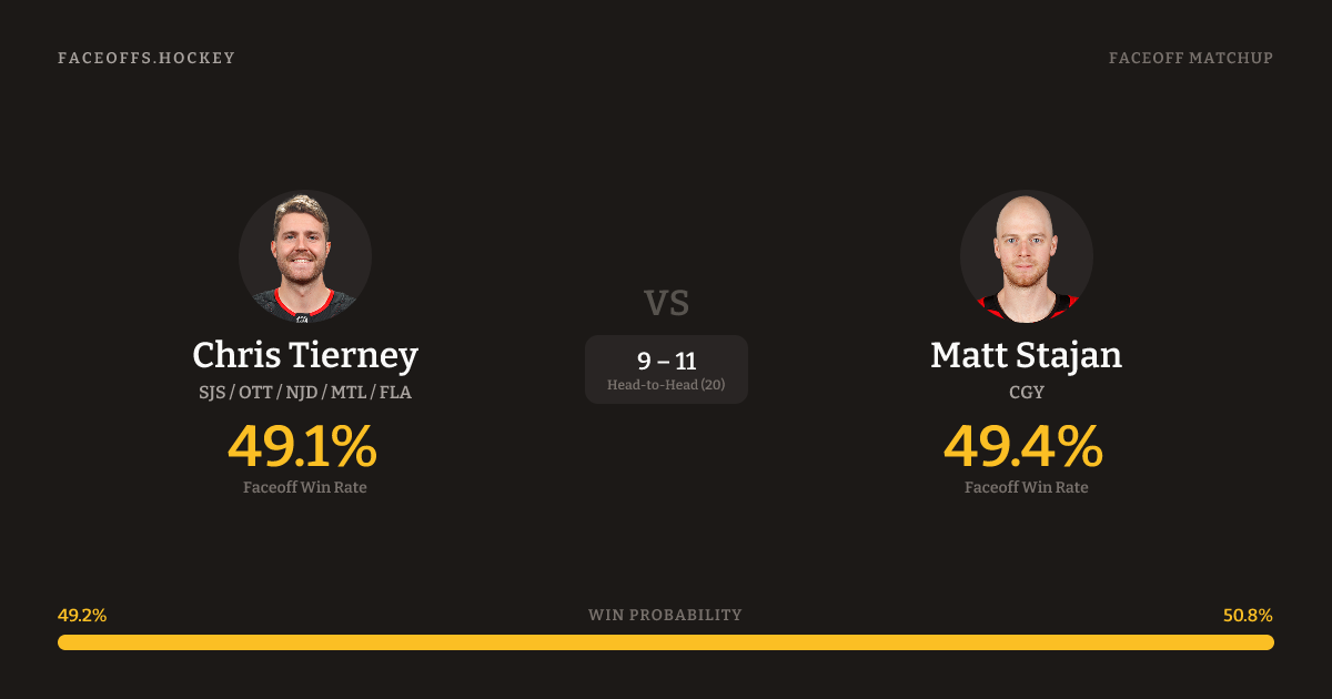 Chris Tierney vs Matt Stajan — Faceoff Head-to-Head