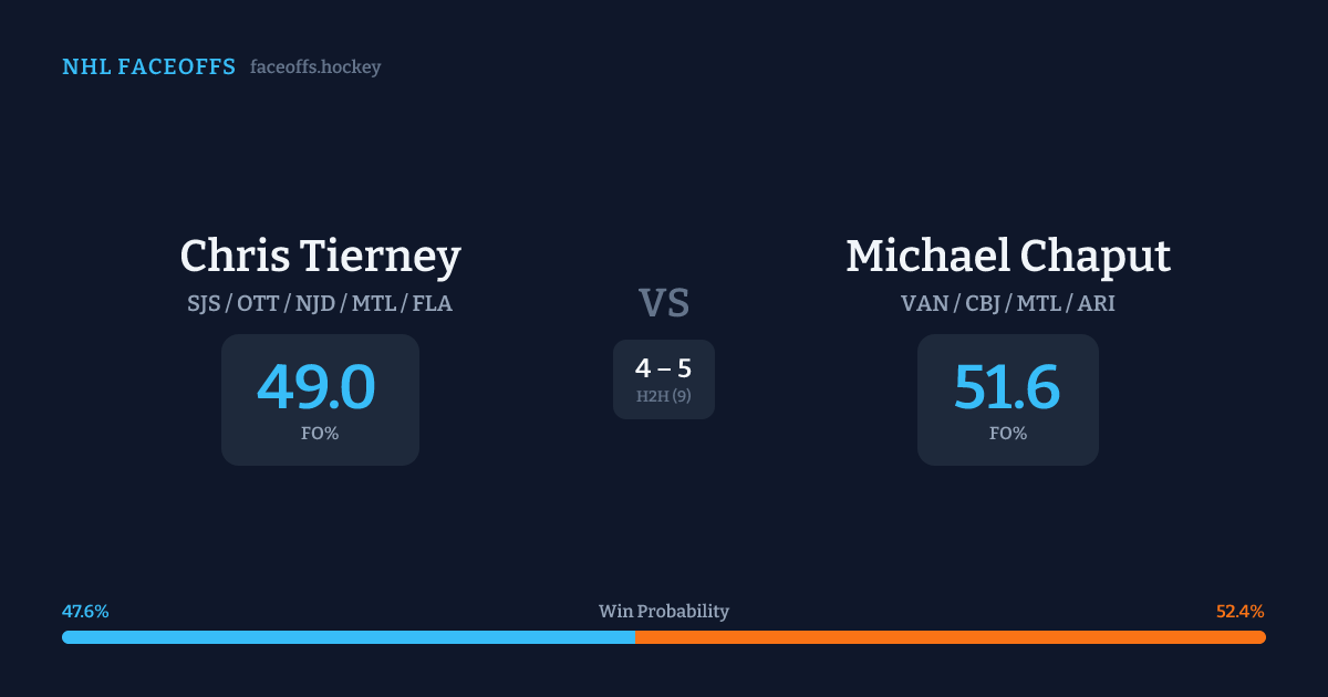 Chris Tierney vs Michael Chaput — Faceoff Head-to-Head