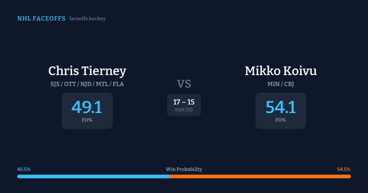 Chris Tierney vs Mikko Koivu — Faceoff Head-to-Head
