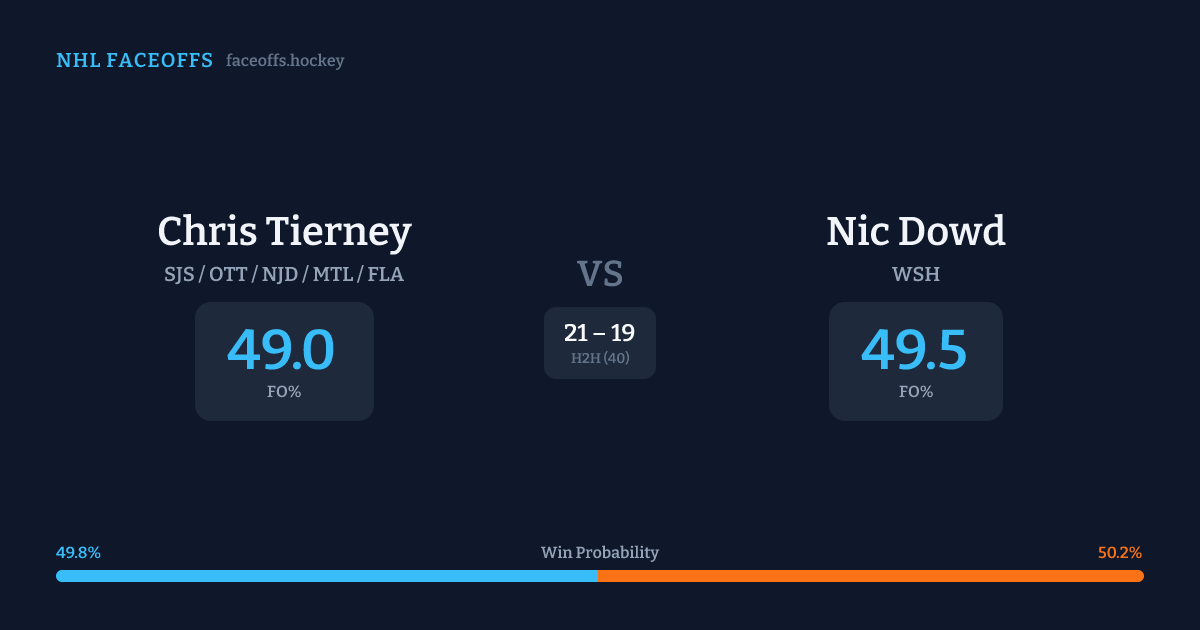 Chris Tierney vs Nic Dowd — Faceoff Head-to-Head
